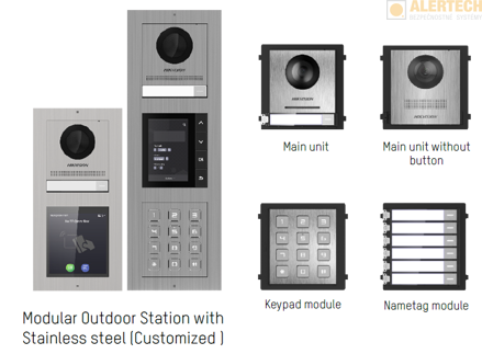 Základom modulárnej dvernej jednotky je kamerový modul. V kamerovom module je integrované aj 1 zvončekové vyzváňacie tlačítko, mikrofón, reproduktor a konketor RJ45 pre pripojenie do siete LAN. Kamera má rozlíšenie obrazu 2MPx a uhol záberu 180°. Kamerový modul je zároveň riadiacou jednotkou a aj napája rozširujúce moduly dvernej jednotky. Rozširujúce moduly sú spojené s kamerovou jednotkou cez zbernicu.