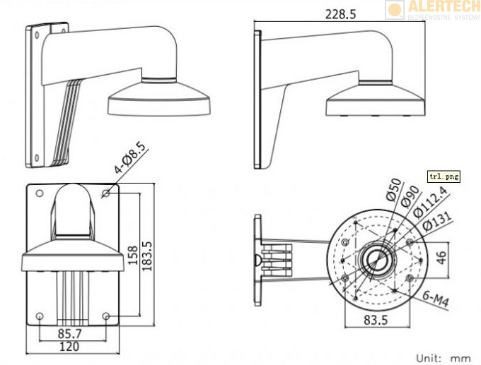 Montážna konzola pre vybrané kamery HikVision. Kompatibilita použitia tohto komponentu je uvedená pri konkrétnych typoch kamier v bloku "Súvisiace príslušenstvo".