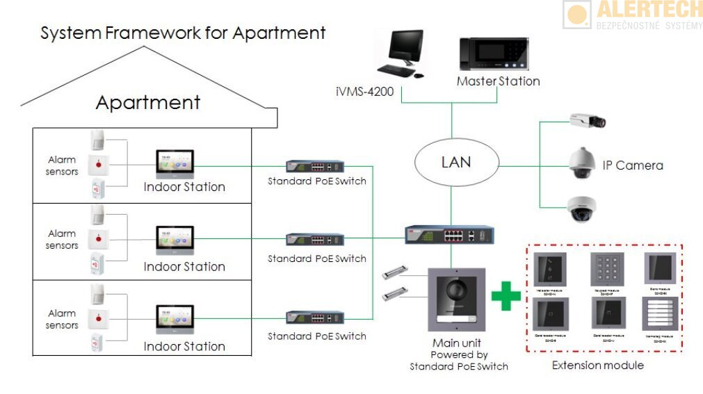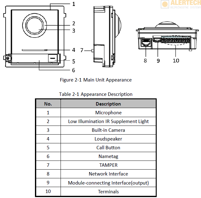 Táto dverná jednotka má veľmi elegantný dizajn v slim prevedení, kamera má veľmi široký uhol záberu, jednotka je vodeodolná (IP65) a čiastočne aj v antivandal prevedení (IK8). Dverná jednotka má 2 relé pre otváranie 2 dverí alebo brán (napríklad v prípade rodinného domu sa rezident môže rozhodnúť, či návšteve cez monitor otvorí bráničku alebo posuvnú bránu pre vjazd auta). Keďže dverná jednotka poskytuje iba relé pre otváranie vstupov, v prípade bráničky alebo dverí, kde je inštalovaný elektromagnetický zámok, je potrebné dokúpiť aj zdroj napájania elektromagnetického zámku (viď "Súvisiace príslušenstvo"). Dverná jednotka je IP zariadenie, takže k PoE switchu/injektoru sa pripája cez UTP/FTP kábel. Hlasové správy pre návštevu sú nahraté v českom jazyku. Kameru z dvernej jednotky je možné jednoducho zaintegrovať do kamerového systému ako bežnú IP kameru. Obraz z kamery a zvuk z jej okolia je možné jednoducho spustiť aplikáciou v smartfóne v rámci LAN siete alebo cez Internet.