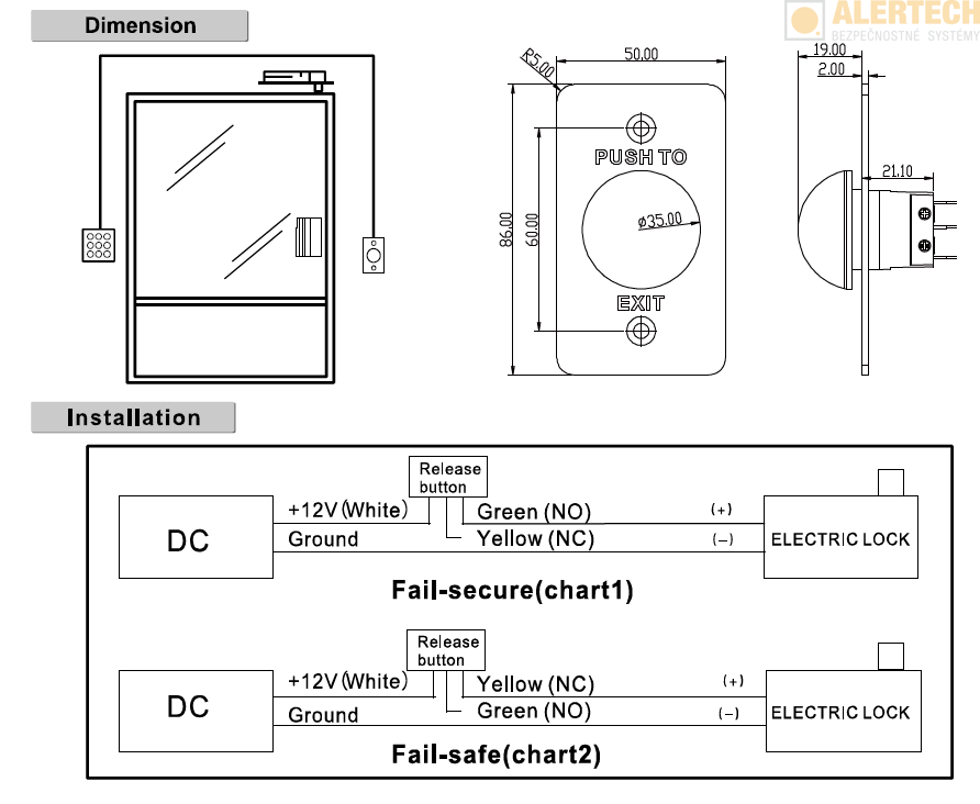 Toto odchodové tlačítko je možné vzhľadom na jeho úzky dizajn inštalovať/zabudovať iba do nejakého dutého rámu alebo stĺpika.