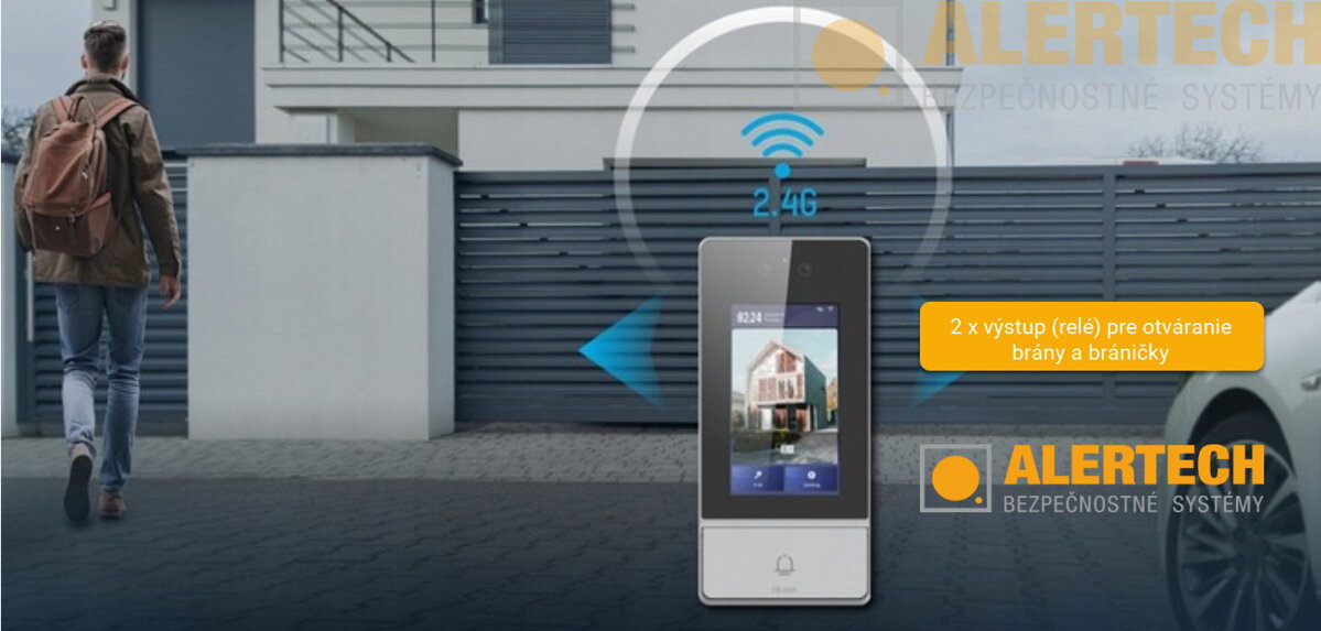 Táto dverná jednotka má veľmi elegantný dizajn v slim prevedení, zariadenie má integrované 2 x 2MPx kamery pre rozpoznávanie tváre, jednotka je vodeodolná (IP65) a čiastočne aj v antivandal prevedení (IK8). Dverná jednotka má 2 relé pre otváranie 2 dverí alebo brán (napríklad v prípade rodinného domu sa rezident môže rozhodnúť, či návšteve cez monitor otvorí bráničku alebo posuvnú bránu pre vjazd auta). Keďže dverná jednotka poskytuje iba relé pre otváranie vstupov, v prípade bráničky alebo dverí, kde je inštalovaný elektromagnetický zámok, je potrebné dokúpiť aj zdroj napájania elektromagnetického zámku (viď "Súvisiace príslušenstvo"). Dverná jednotka je IP zariadenie, takže k PoE switchu/injektoru sa pripája cez jediný UTP/FTP kábel. Hlasové správy pre návštevu sú nahraté v slovenskom jazyku, pri otvorení dverí cez monitor alebo smartfón sa ozve hlasová správa: "Dvere sú otvorené!. Kameru z dvernej jednotky je možné jednoducho zaintegrovať do kamerového systému ako bežnú IP kameru. Obraz z kamery a zvuk z jej okolia je možné hocikedy jednoducho spustiť aplikáciou v smartfóne v rámci LAN siete alebo cez Internet. V prípade inštalácie do exteriéru, kde dverná jednotka "oprší", je potrebné dokúpiť protidažďovú striešku (viď "Súvisiace príslušenstvo). Dverná jednotka má okrem otvárania rozpoznávaním tváre v sebe integrovanú čítačku prístupových čipov alebo kariet, displejovú klávesnicu na otváranie PIN kódom a otváranie je možné aj použitím QR kódu.